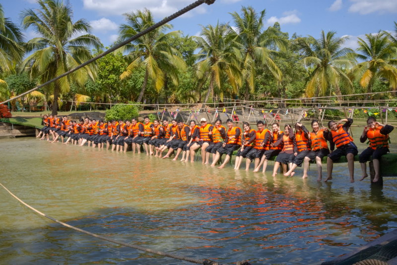 Cán bộ Đoàn - Hội tham gia trải nghiệm tại Khu Du lịch Lan Vương, tỉnh Bến Tre.