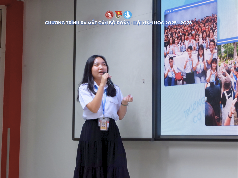 Tiếp sau đó, đồng chí Đỗ Huỳnh Thanh Thảo - Ủy viên Ban Thường vụ Đoàn Thanh niên, Chủ tịch Hội Sinh viên Trường đã có phần chia sẻ cụ thể về cơ cấu tổ chức của Hội Sinh viên với hệ thống từ Ban Chấp hành Hội Sinh viên Trường và Chi hội, Câu lạc bộ trực thuộc, thể hiện sự chặt chẽ trong công tác điều hành và phối hợp nhằm bảo đảm mọi hoạt động diễn ra hiệu quả, đồng thời giới thiệu 06 hoạt động lớn thường niên tạo dấu ấn riêng của Hội Sinh viên Trường, gồm: Xuân Tình nguyện, Hội thao FTUGames, Ngày hội việc làm Career Fair, Mùa hè xanh, Tuyên dương Sinh viên 5 tốt, Ngày hội Câu lạc bộ – Đội – Nhóm – Cộng đồng - Club Fair, qua đó khẳng định vai trò của Hội Sinh viên không chỉ là tổ chức đại diện mà còn là mái nhà chung đồng hành cùng sinh viên trong học tập, rèn luyện và trưởng thành.