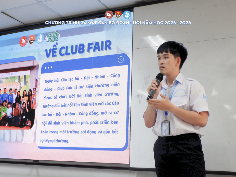 Trong phần chia sẻ sâu sắc và gần gũi, đồng chí Phạm Văn Lực - Bí thư Đoàn trường, đã mang đến cho các bạn Tân Sinh viên một bức tranh tổng quan về cơ cấu tổ chức của Đoàn Thanh niên Trường Đại học Ngoại thương Cơ sở II, cũng như giới thiệu hệ thống các Câu lạc bộ - Đội - Nhóm trực thuộc đang hoạt động sôi nổi dưới mái nhà chung FTU Cơ sở II. Không chỉ dừng lại ở việc cung cấp thông tin, đồng chí còn nhấn mạnh vai trò và ý nghĩa của việc tham gia hoạt động Đoàn - Hội trong môi trường đại học, từ đó khơi gợi nơi các bạn sinh viên tinh thần trách nhiệm, sự chủ động và bản lĩnh của một người Đoàn viên thời đại mới, những người trẻ sẵn sàng dấn thân, cống hiến và trưởng thành qua từng trải nghiệm.