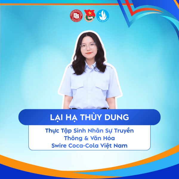 58Chị Lại Hạ Thùy Dung hiện đang đảm nhiệm vị trí Thực tập sinh nhân sự truyền thông & văn hóa tại Swire Coca-Cola Vietnam, nơi Chị tham gia vào các hoạt động xây dựng văn hóa doanh nghiệp, truyền thông nội bộ và phát triển trải nghiệm nhân sự. Với nền tảng chuyên ngành Truyền thông Marketing tích hợp, Chị không chỉ được trang bị tư duy về truyền thông mà còn phát triển khả năng kết nối con người, tổ chức và thông điệp trong môi trường doanh nghiệp. Trong quá trình học tập tại Phân hiệu Trường Đại học Ngoại thương tại TP. HCM, Chị đã đạt danh hiệu Sinh viên 5 tốt, thể hiện sự nỗ lực trong việc phát triển toàn diện cả về học thuật, kỹ năng và sự chủ động tham gia các hoạt động. Chia sẻ về hành trình của mình, Chị nhìn nhận “Sinh viên 5 tốt” như một quá trình giúp bản thân hiểu rõ mình phù hợp với điều gì và muốn trở thành ai trong tương lai.