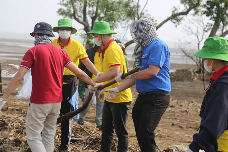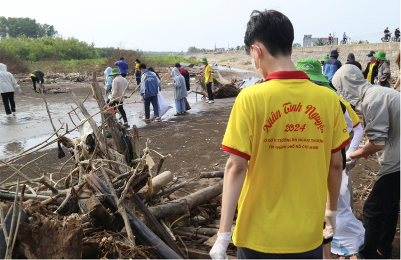 Chỉ chưa đầy 1 tiếng rưỡi, hơn 200 thành viên của Chiến dịch và đoàn viên, thanh niên, tình nguyện viên địa phương đã hoàn thành nhiệm vụ được giao, dọn dẹp sạch sẽ rác thải xung quanh khu vực (In less than an hour and a half, over 100 members of the campaign completed their assigned task, cleaning up the surrounding area of waste)