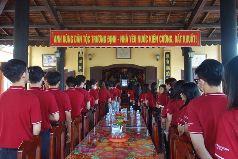 Thường trực Đoàn Thanh niên – Hội Sinh viên và các chiến sĩ Xuân tình nguyện dâng hương tưởng nhớ anh hùng dân tộc Trương Định (Standing Committee of Youth Union – Students’ Association and Spring Volunteers offered incense in memory of national hero Truong Dinh)