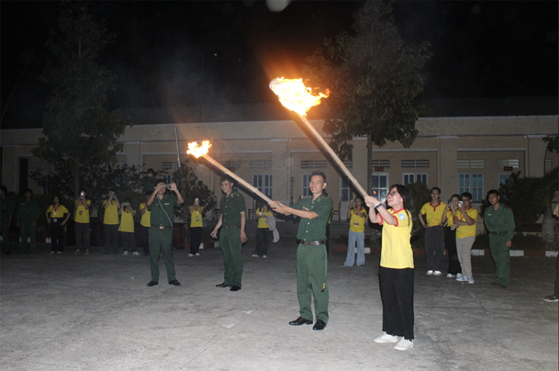 Tiếp nối không khí sôi nổi của buổi gói bánh chưng, đêm giao lưu văn nghệ và lửa trại giữa các chiến sĩ Xuân tình nguyện và các chiến sĩ Đồn Biên phòng đã diễn ra trong không khí ấm áp, thân tình. Đêm văn nghệ với nhiều tiết mục đặc sắc được các chiến sĩ nghiêm túc, đầu tư chỉn chu mang đến những khoảnh khắc ý nghĩa, nhân văn. Đặc biệt, tiểu phẩm kịch ngắn “Ta đã thấy gì trong đêm nay” của các chiến sĩ Xuân tình nguyện Cơ sở II đã để lại nhiều ấn tượng sâu sắc trong lòng khán giả. Tiểu phẩm đã khắc hoạ lại hình ảnh anh bộ đội cụ Hồ chân thực, dũng cảm, kiên cường, sẵn sàng hy sinh tuổi trẻ để đấu tranh giải phóng dân tộc, bảo vệ Tổ quốc. Đêm giao lưu văn nghệ và lửa trại đã góp phần thắt chặt tình đoàn kết, gắn bó giữa các chiến sĩ Xuân tình nguyện và các chiến sĩ Đồn Biên phòng, mang lại một bầu không khí ấm cúng, nghĩa tình trong thời khắc giao thoa giữa năm cũ và năm mới đầy ý nghĩa. Ngọn lửa bập bùng hoà cùng tiếng hát giữa rừng biên cương như đang tiếp thêm cho mỗi chiến sĩ tình yêu quê hương, yêu hình ảnh chú bộ đội ở nơi biên cương chẳng ngại mưa nắng đứng gác ngày ngày…