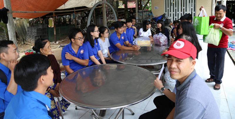 8437Nhằm kịp thời động viên các chiến sĩ tình nguyện thực hiện Chiến dịch Mùa hè xanh 2017, ngày 25/7/2017, đoàn công tác Cơ sở II trường Đại học Ngoại thương do ThS Bùi Văn Yến – Phó Trưởng Ban QLĐT làm Trưởng đoàn, bao gồm đồng chí Phạm Hiển Dân – Bí thư Đoàn trường và các Thầy Cô đến từ các đơn vị của Nhà trường đã đến thăm hỏi và tặng quà cho các chiến sĩ tình nguyện Mùa hè xanh 2017 ở các mặt trận Huyện Nhà Bè, Huyện Bình Chánh, Tp. Hồ Chí Minh và Huyện Mỏ Cày, Tỉnh Bến Tre.