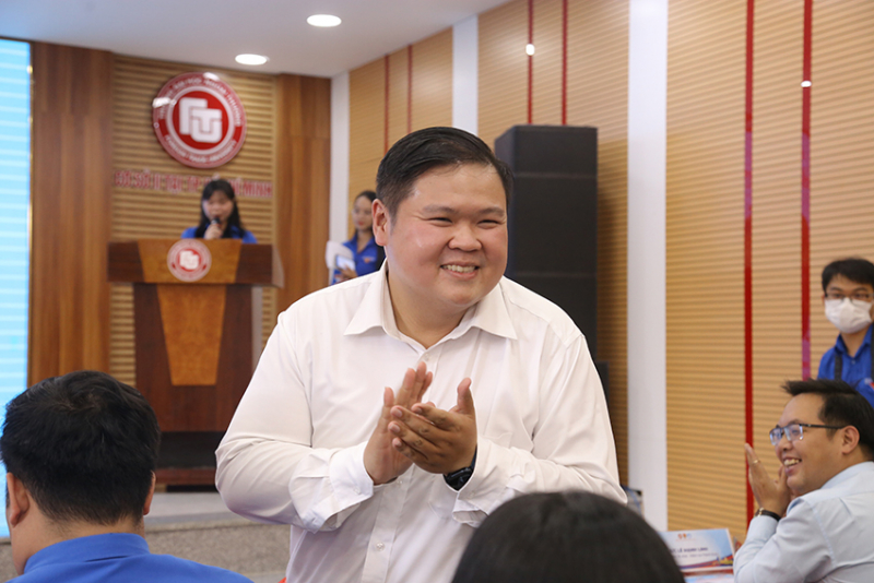 (Student Le Nguyen Thanh Luan – Vice President of IMC Integrated Marketing and Communications Club spoke at the Conference)