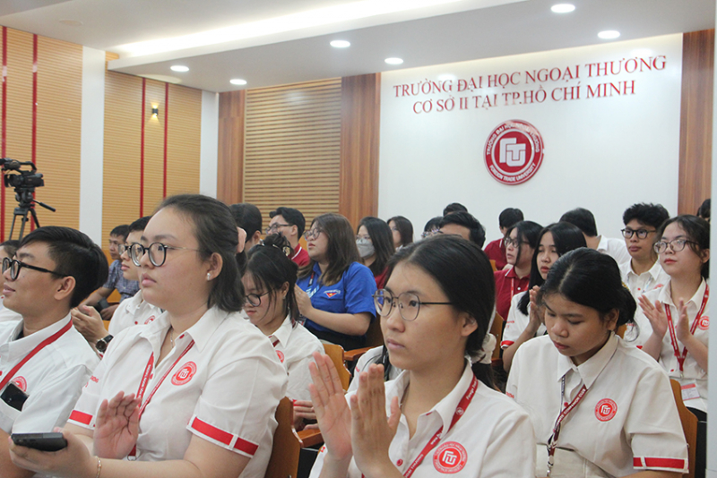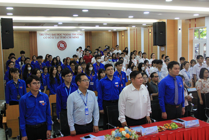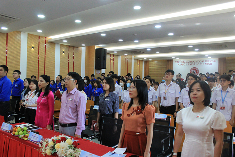 In the exciting atmosphere of Youth Month 2024, on the afternoon of March 8, 2024, the Standing Committee of the Youth Union of Foreign Trade University Campus II coordinated with the Cell Committee of Student Party of Campus II to organize the The 6th Association Conference on Developing New Communist Party Members Among Students – 2024 and the Commendation Program for Outstanding Youth Union Officers and Youth Union Members joining the ranks of the Communist Party on the occasion of Youth Month 2024.