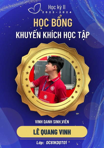 1519Đồng chí Lê Quang Vinh – Nguyên Ủy viên Ủy ban Kiểm tra Đoàn trường, Bí thư Chi đoàn K61A, ngành đào tạo Quản trị Kinh doanh Quốc tế, Trường Đại học Ngoại thương Cơ sở II tại TP. Hồ Chí Minh – là gương mặt sinh viên tiêu biểu với niềm đam mê nghiên cứu, tinh thần khám phá và khát vọng không ngừng hoàn thiện bản thân. Trong hành trình học tập tại Ngoại thương, Vinh Lê nhận ra rằng mỗi quá trình trưởng thành đều bắt đầu từ sự nỗ lực nội tại, nhưng chỉ thật sự trọn vẹn khi được lan tỏa và sẻ chia cùng tập thể. Việc liên tiếp đạt danh hiệu "Sinh viên 5 tốt" cấp Trường trong hai năm và Sinh viên 5 tốt cấp Thành phố là dấu mốc giúp Vinh Lê nhìn lại chặng đường đã qua, đồng thời khẳng định rằng giá trị của nỗ lực không nằm ở sự ghi nhận bên ngoài, mà ở những đóng góp tích cực dành cho cộng đồng.