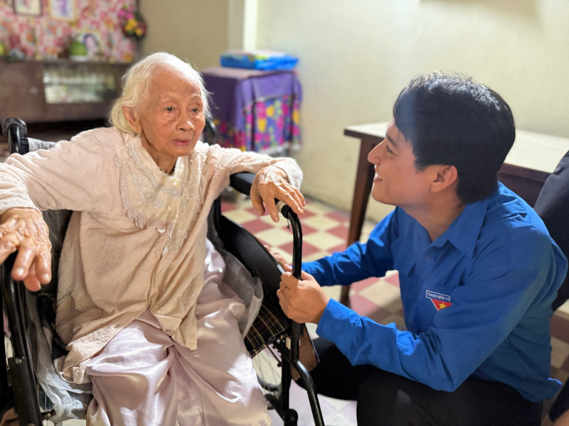 Trong suốt hành trình, Tuổi trẻ Ngoại thương đã trực tiếp đến từng gia đình, ân cần thăm hỏi sức khỏe, đời sống sinh hoạt và lắng nghe những câu chuyện gắn liền với ký ức một thời chiến tranh. Những lời kể mộc mạc, chân thành không chỉ giúp thế hệ trẻ hiểu rõ hơn về những năm tháng gian khó mà còn khơi dậy niềm trân quý giá trị của hòa bình, cảm nhận sâu sắc sự hy sinh thầm lặng của các thế hệ đi trước. Các phần quà được trao gửi là lời động viên tinh thần, đồng thời thể hiện sự trân trọng và biết ơn trước những cống hiến bền bỉ của các bác, các chú cựu chiến binh.