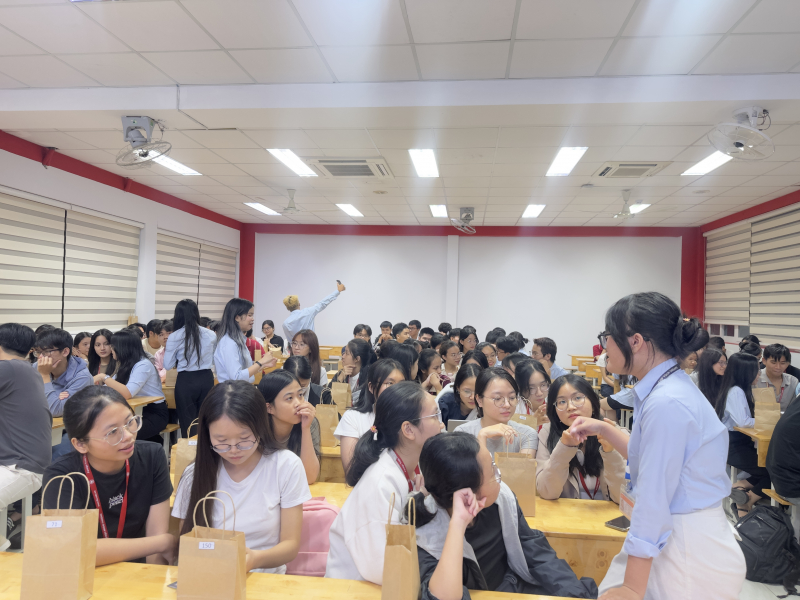 Bên cạnh phần chia sẻ chính, Small Talk còn tạo ra một không gian giao lưu mở, nơi sinh viên đặt câu hỏi về ngành học, cơ hội thực tập, định hướng nghề nghiệp và cách xây dựng hồ sơ năng lực ngay từ năm nhất. Các trao đổi diễn ra trong không khí gần gũi, chân thành và khích lệ, giúp tân sinh viên giải tỏa những băn khoăn thường gặp trong giai đoạn đầu đại học, đồng thời nhìn nhận rõ hơn về những kỹ năng cần được rèn luyện trong bối cảnh thị trường logistics đang phát triển nhanh chóng.