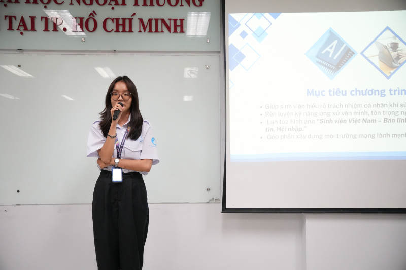 Chương trình đã được tổ chức và diễn ra vào ngày 10/10/2025 (thứ Sáu) tại Hội trường B001 - Trường Đại học Ngoại thương Cơ sở II tại TP. Hồ Chí Minh. Đây là dịp để sinh viên tiếp cận những kiến thức nền tảng về chuyển đổi số, hiểu rõ hơn vai trò của bản thân trong dòng chảy công nghệ, đồng thời có cơ hội trao đổi, thảo luận về cách thích nghi và phát triển trong môi trường số đầy biến động.