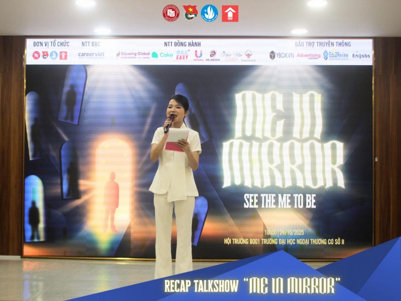 1216Với mong muốn đồng hành cùng sinh viên, đặc biệt là các tân sinh viên, trong giai đoạn thích nghi với môi trường đại học, định hình tư duy phát triển bản thân và vượt qua áp lực đồng trang lứa (peer pressure), ngày 26/10/2025, Cộng đồng Hướng nghiệp và Phát triển sự nghiệp (CUC) trực thuộc Đoàn Thanh niên – Hội Sinh viên Việt Nam Cơ sở II Trường Đại học Ngoại thương đã tổ chức thành công Talkshow “Me in Mirror – See the Me to Be” tại Hội trường B001, Cơ sở II Trường Đại học Ngoại thương tại TP. Hồ Chí Minh. Với chủ đề hướng đến việc “soi chiếu bản thân” thông qua lăng kính Ikigai – triết lý sống và định hướng sự nghiệp từ Nhật Bản, Talkshow không chỉ cung cấp kiến thức học thuật mà còn mở ra không gian trải nghiệm giúp sinh viên nhận diện giá trị cá nhân, hiểu mình, hiểu mục tiêu và hiểu con đường phía trước. Chương trình thu hút hơn 100 sinh viên tham dự, tạo nên không khí học thuật cởi mở, chân thành và giàu tính suy ngẫm.