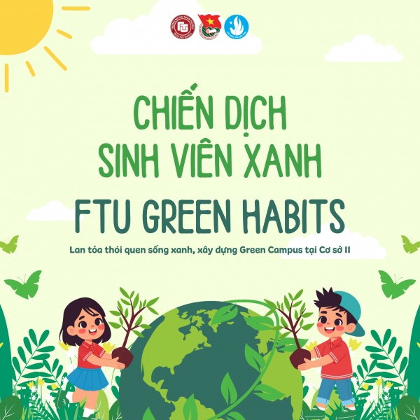 41Trong bối cảnh phát triển bền vững đang trở thành xu hướng tất yếu của xã hội hiện đại, việc xây dựng môi trường học đường văn minh, thân thiện với môi trường ngày càng được quan tâm trong các cơ sở giáo dục. Hưởng ứng tinh thần lan tỏa lối sống xanh trong cộng đồng sinh viên, Chiến dịch “Sinh viên xanh - FTU Green Habits” được triển khai trong khoảng thời gian từ ngày 01/12/2025 - 07/12/2025 với mục tiêu hình thành những thói quen sống xanh từ những hành động nhỏ, từ đó từng bước kiến tạo mô hình Green Campus tại Cơ sở II. Tinh thần này cũng phù hợp với định hướng truyền thông xanh mà Cơ sở II đã và đang lan tỏa qua các nội dung kêu gọi lựa chọn lối sống bền vững, hành động nhỏ nhưng tạo nên thay đổi tích cực cho môi trường.