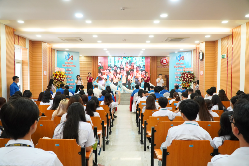Toàn cảnh hội trường tổ chức Đại hội Đại biểu Hội Sinh viên Việt Nam Trường Đại học Ngoại thương Cơ sở II tại TP. Hồ Chí Minh.