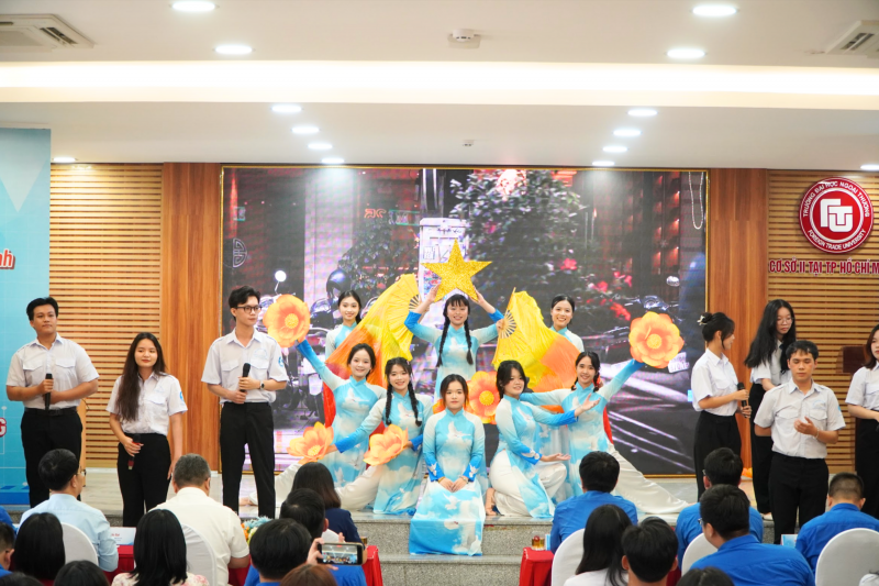 Tiết mục văn nghệ khai mạc “Người Ngoại thương - Khát vọng sinh viên Việt Nam - Thênh thang đường mới” được trình bày bởi Đội Tuyên truyền ca khúc cách mạng TCM