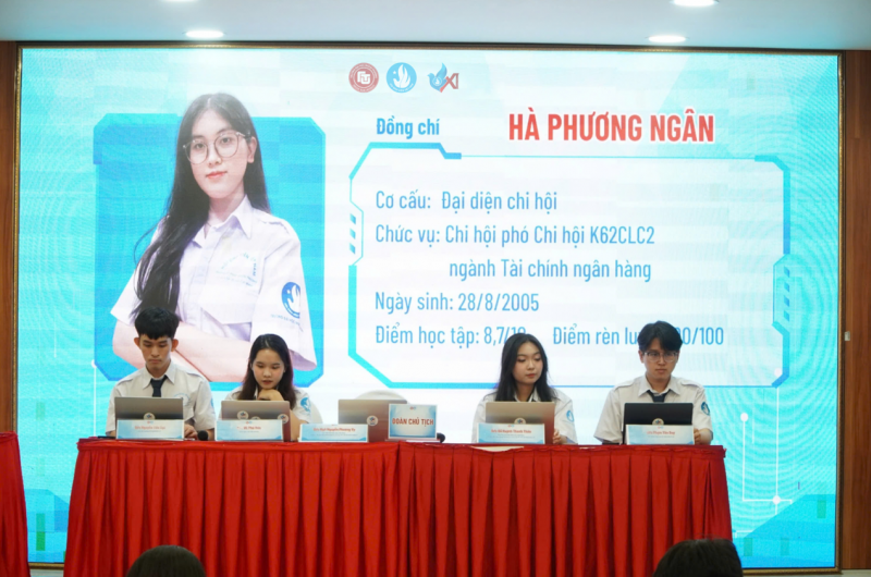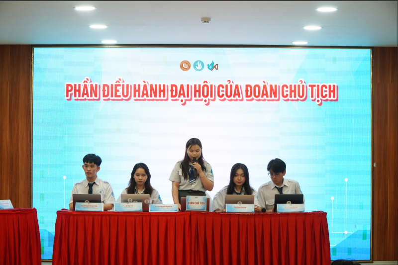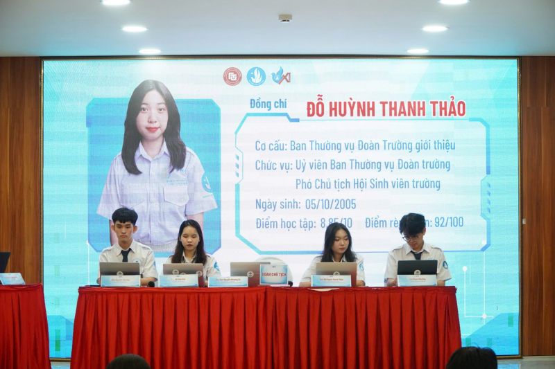 Đoàn Chủ tịch trình bày danh sách nhân sự ứng cử Ban Chấp hành Hội Sinh viên Việt Nam Trường khóa XI, nhiệm kỳ 2025 - 2028.